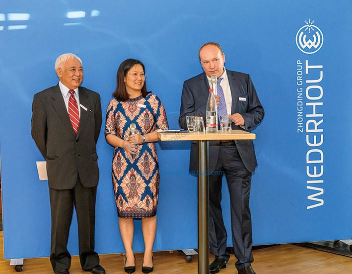 夏董事長在致詞中說,這既是一個回憶的宴會,也是一個感恩的宴會,還是一個展望的宴會。他回顧了中德兩國百年來的歷史風云,以及韋德和特公司在百年風雨中的命運沉浮。他稱贊韋德和特公司是德國工業(yè)發(fā)展中中型企業(yè)的歷史剪影,以及公司歷經磨難而不衰、艱難跋涉愈挫愈勇的發(fā)展精神。他還介紹了中鼎的創(chuàng)業(yè)發(fā)展情況。他說,中鼎與韋德和特公司的結合是英雄相惜,自收購以來,韋德和特公司在中鼎扶持下實現(xiàn)華麗轉身,2018年更是超額完成預算,產出65000噸鋼管,銷售超過1億歐元。2019年,韋德和特整裝待發(fā),改進生產工藝,開始實施一系列投資計劃,前景一片光明。對關心和支持韋德和特公司發(fā)展的當?shù)卣?、銀行、供應商、客戶,他表示感謝,同時感謝公司全體員工同舟共濟,不辭辛勞為企業(yè)發(fā)展壯大貢獻力量。致辭中,他還展望了公司未來發(fā)展格局,他說,回顧過去的100年,我們歷盡風雨,百感交集;展望下一個百年,我們躊躇滿志,豪氣干云。站在新的百年起點上,讓我們攜起手來,團結一心,加倍努力,共同書寫中鼎韋德和特更加美好的嶄新篇章,為實現(xiàn)“共創(chuàng)價值,共享幸福”的“中鼎夢”而繼續(xù)努力奮斗。