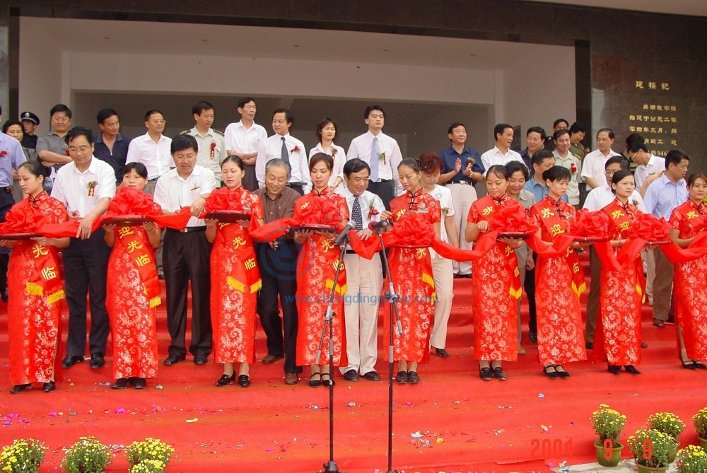 鼎湖小學(xué)落成典禮結(jié)束后,夏董事長及全家,省、地、市領(lǐng)導(dǎo)即前往寧國中學(xué)高中部,參加鼎湖教學(xué)樓落成典禮。