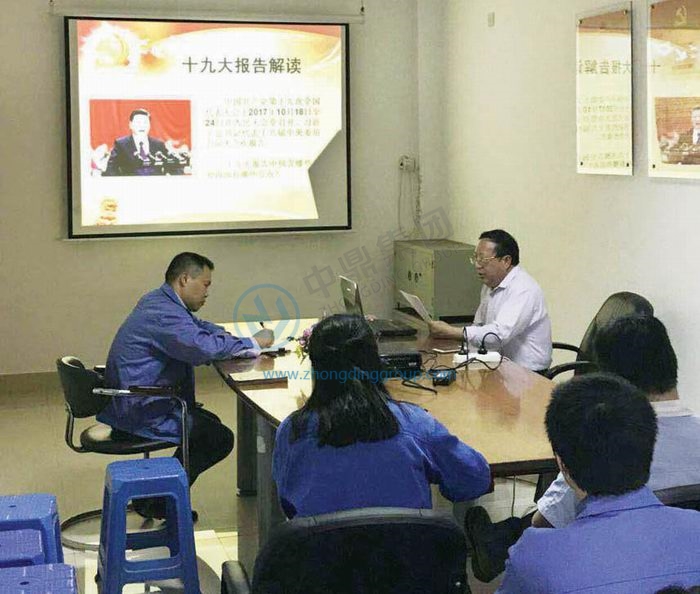 11月30日,中鼎橡塑工會主席趙東有到江裕中鼎宣講黨的十九大精神,副總經理陳宏旗主持會議,黨支部書記陳健成及全體黨員、工會主席張宏星、各課室課長及成員等20多人參加了會議,聆聽了報告。