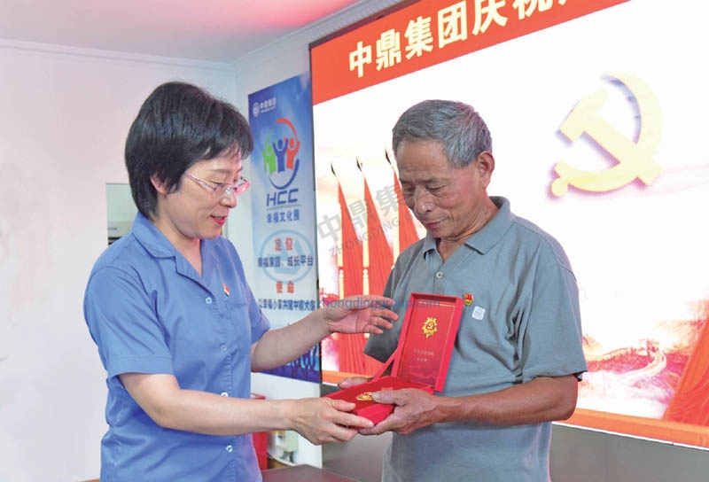 會上,集團黨委副書記梁艷為50年黨齡的老黨員陳關(guān)有頒發(fā)“光榮在黨50年”紀念章,并送上慰問金2000元。